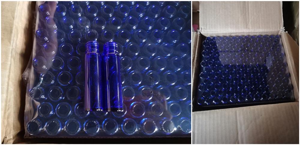 زجاجات دوارة من الزجاج الأزرق الكوبالت سعة 10 مل مع غطاء أسود