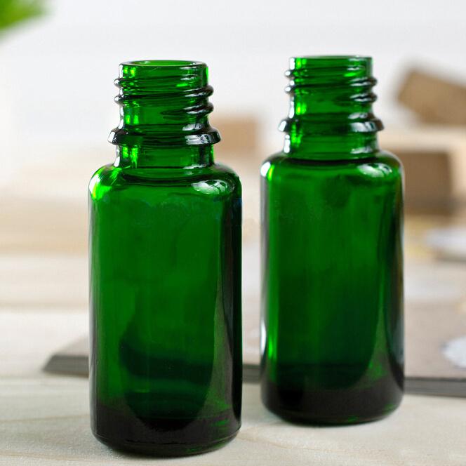 زجاجات أوروبية زجاجية خضراء سعة أونصة واحدة، مثالية لتخزين مستحضرات العلاج بالروائح، والزيوت العطرية، ومنتجات العناية بالجمال، والعطور. تتوفر أغطية مخصصة.