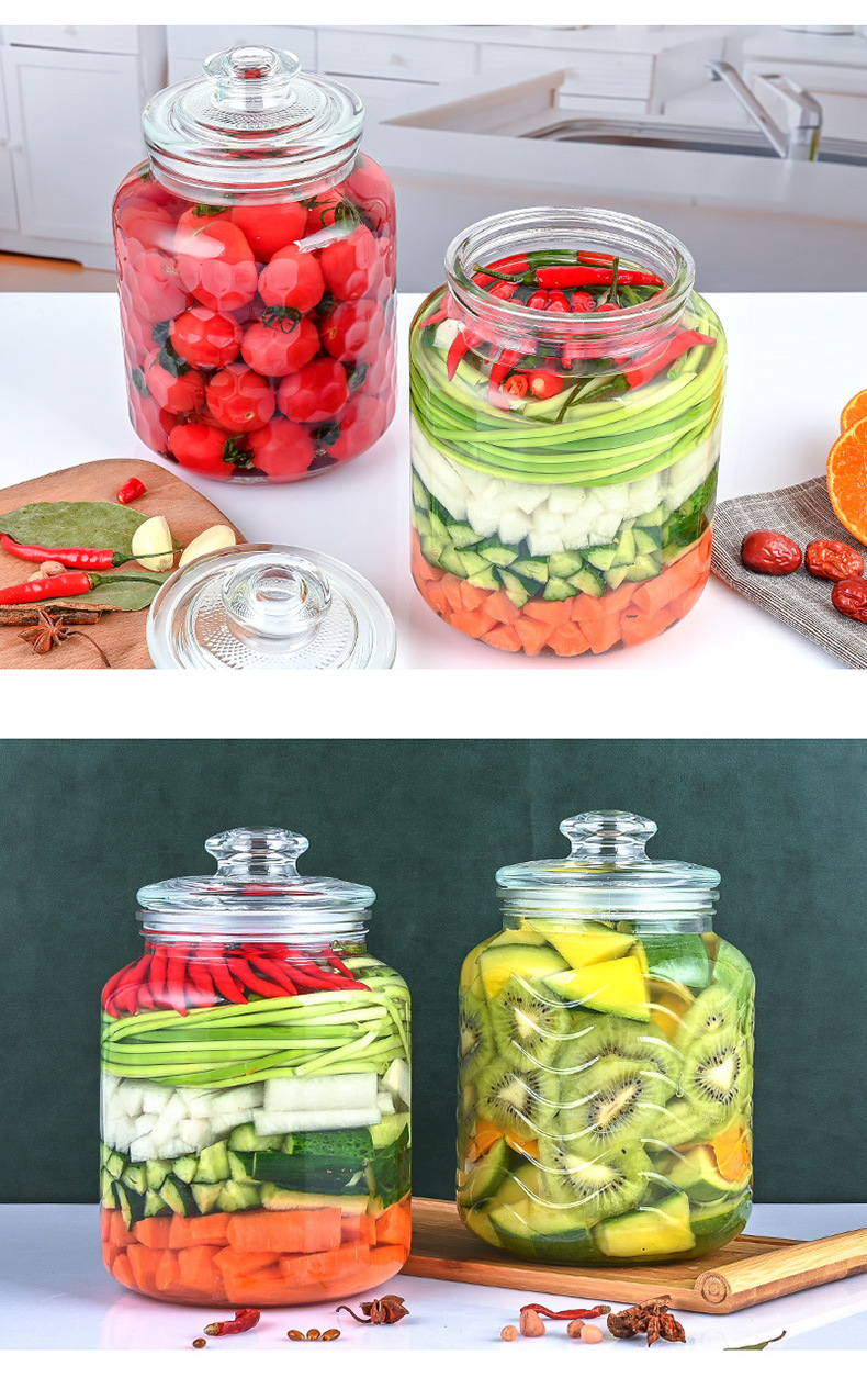 جرة مخلل زجاجية شفافة زجاجة مخلل جرة مختومة .