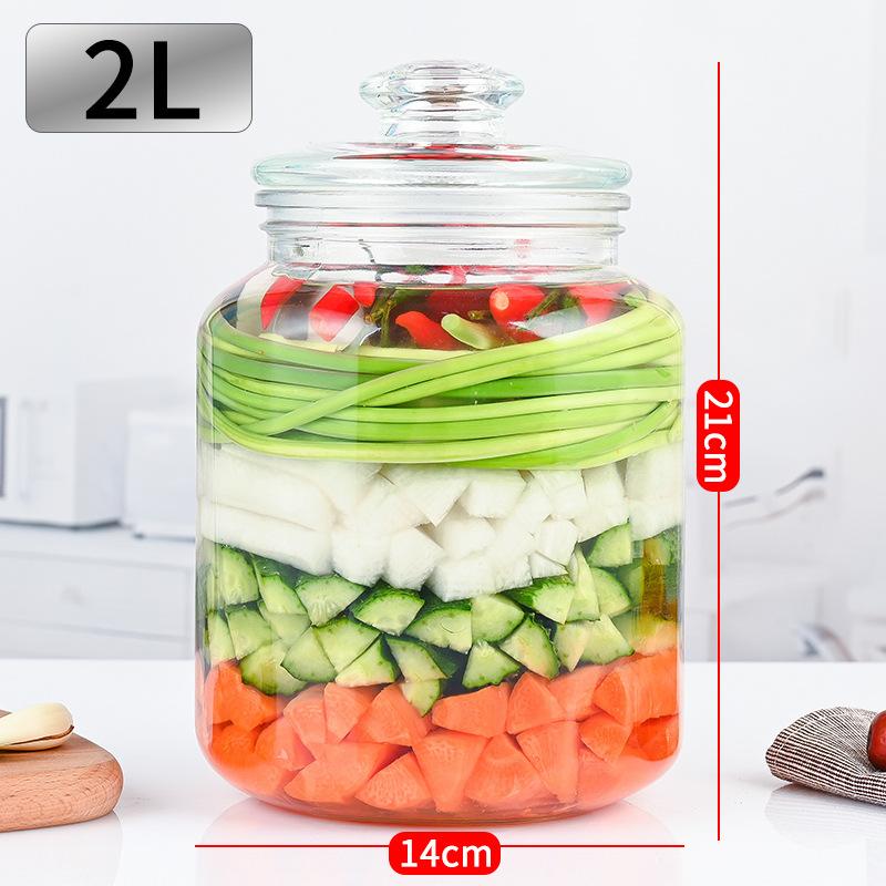 2000mlجرة مخلل زجاجية شفافة سعة 2000 مل، جرة مخلل محكمة الغلق