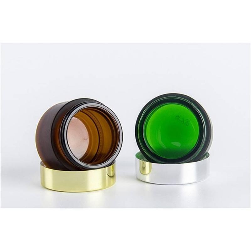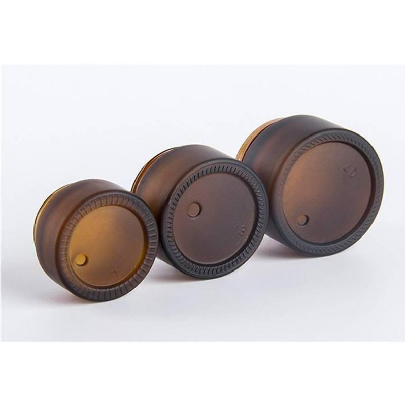 هذه البرطمانات الزجاجية الدائرية عالية الجودة، باللون الكهرماني، والأخضر، مثالية للاستخدام مع المستحضرات والكريمات والمقشرات. كل منها