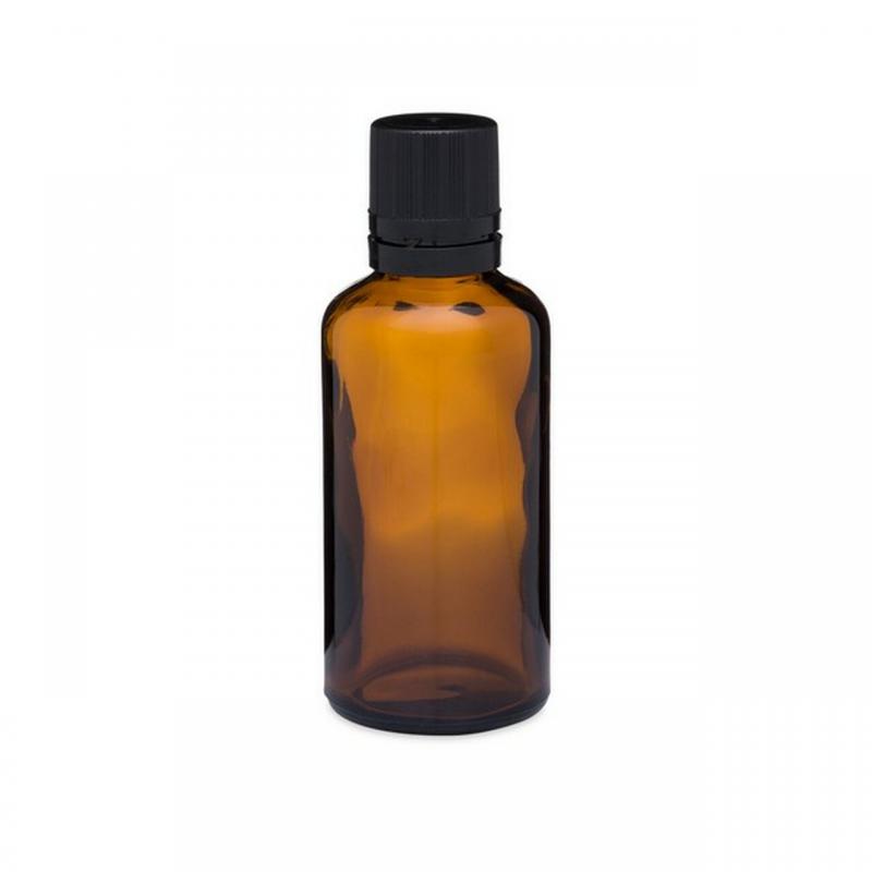 زجاجات زيت عطري زجاجية كهرمانية سعة 50 مل مع غطاء أسود