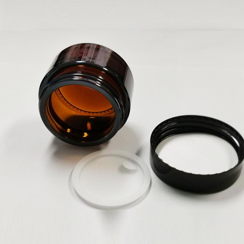 القابلة لإعادة الاستخدام وعاء زجاجي كهرماني ذو جوانب مستقيمة سعة 60 جرامًا مناسب لكريمات الوجه، والبلسم، والبودرة، واللوشن، والجل، وأملاح الاستحمام، وغيرها. برطمان زجاجي كهرماني اللون مزود بغسالة سحب وغطاء أسود. يمكن تغيير لون الغطاء إلى ألوان متنوعة، مثل الذهبي، والفضي، والأسود، والأزرق، وغيرها.