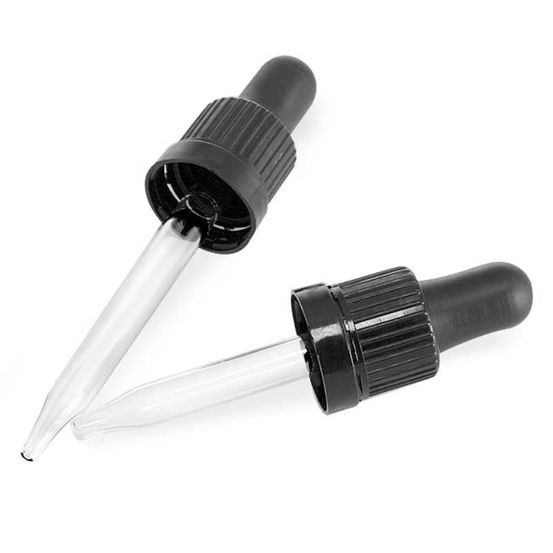 غطاء قطارة أوروبي مقاوم للتلاعب من مادة البولي إيثيلين عالي الكثافة باللون الأسود مع ملحق قطارة من مادة البولي إيثيلين منخفض الكثافة، غطاء قياس وتوزيع دقيق متعدد الأغراض. هذه القطارة مثالية للزيوت الأساسية والسوائل الإلكترونية والمستحضرات الصيدلانية والعطور والسوائل الأخرى.