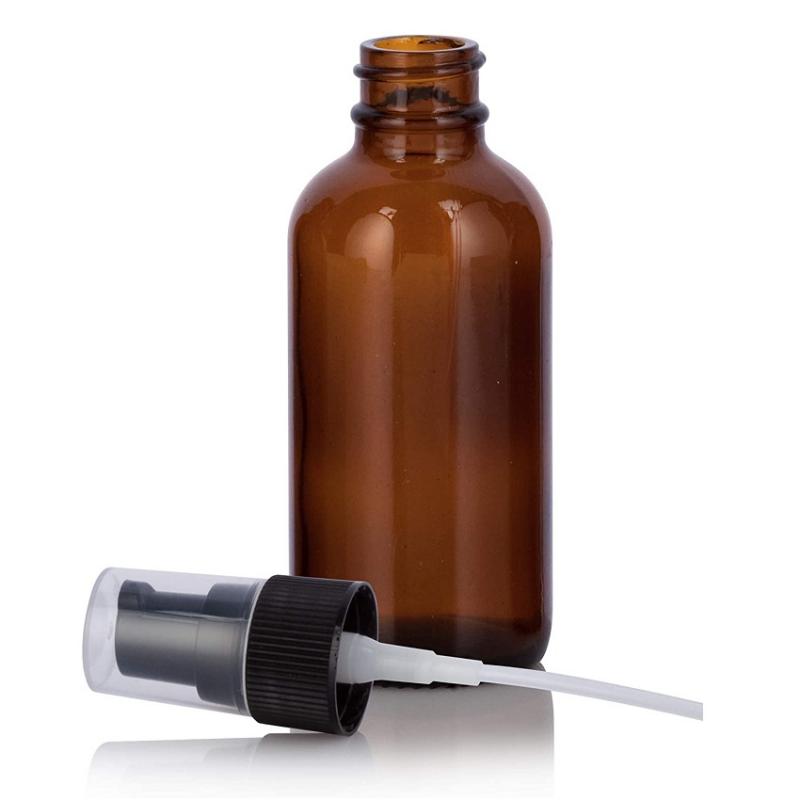 زجاجة بوسطن دائرية من العنبر مع بخاخ ضبابي أسود