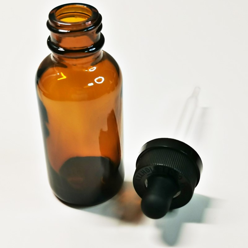 زجاجات زجاجية مستديرة من العنبر بوسطن سعة 1 أونصة و30 مل مع قطارة