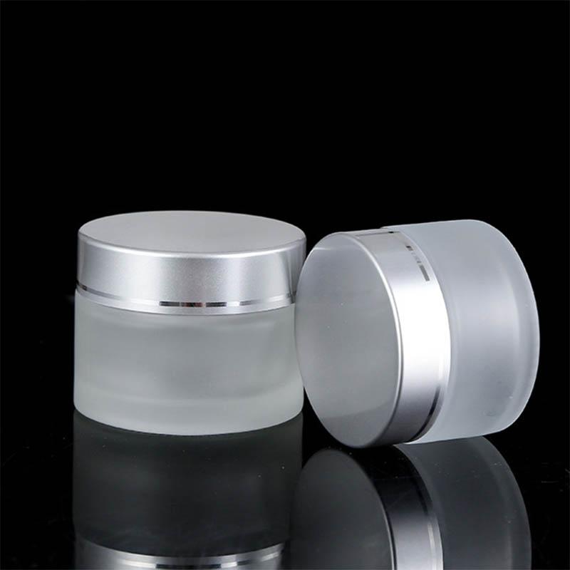 جرة مستحضرات التجميل الزجاجية البيضاء المصنفرة 20 جرام 30 جرام 50 جرام 110 جرام 120 جرام مخصصة، مستحضرات التجميل الراقية الجميلة، المراهم، المراهم، التوابل، التوابل وغيرها من حاويات منتجات العناية بالبشرة. أداء جيد للختم ومعايير السلامة والجودة سهلة التنظيف وإعادة الاستخدام وإعادة التدوير