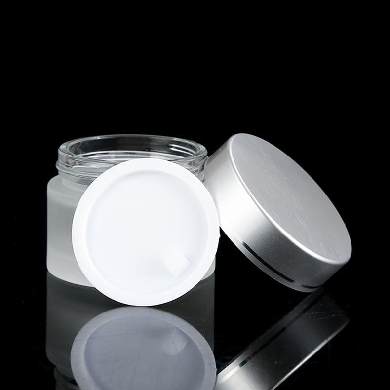 جرة مستحضرات التجميل الزجاجية البيضاء المصنفرة 20 جرام 30 جرام 50 جرام 110 جرام 120 جرام مخصصة، مستحضرات التجميل الراقية الجميلة، المراهم، المراهم، التوابل، التوابل وغيرها من حاويات منتجات العناية بالبشرة. أداء جيد للختم ومعايير السلامة والجودة سهلة التنظيف وإعادة الاستخدام وإعادة التدوير